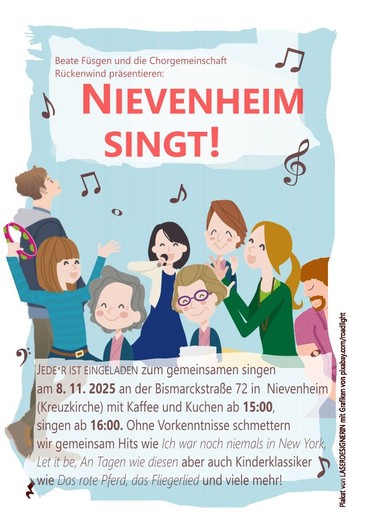 Wer die Chorgemeinschaft Rückenwind live erleben – oder gleich selbst mitmachen möchte – hat bald die perfekte Gelegenheit: Am 8. November 2025 lädt der Chor alle Interessierten herzlich zu einem offenen Mitsing-Nachmittag in die Kreuzkirche Nievenheim (Bismarckstraße 72) ein.
